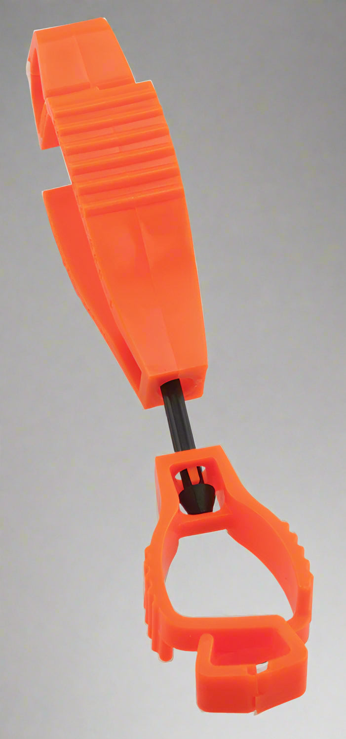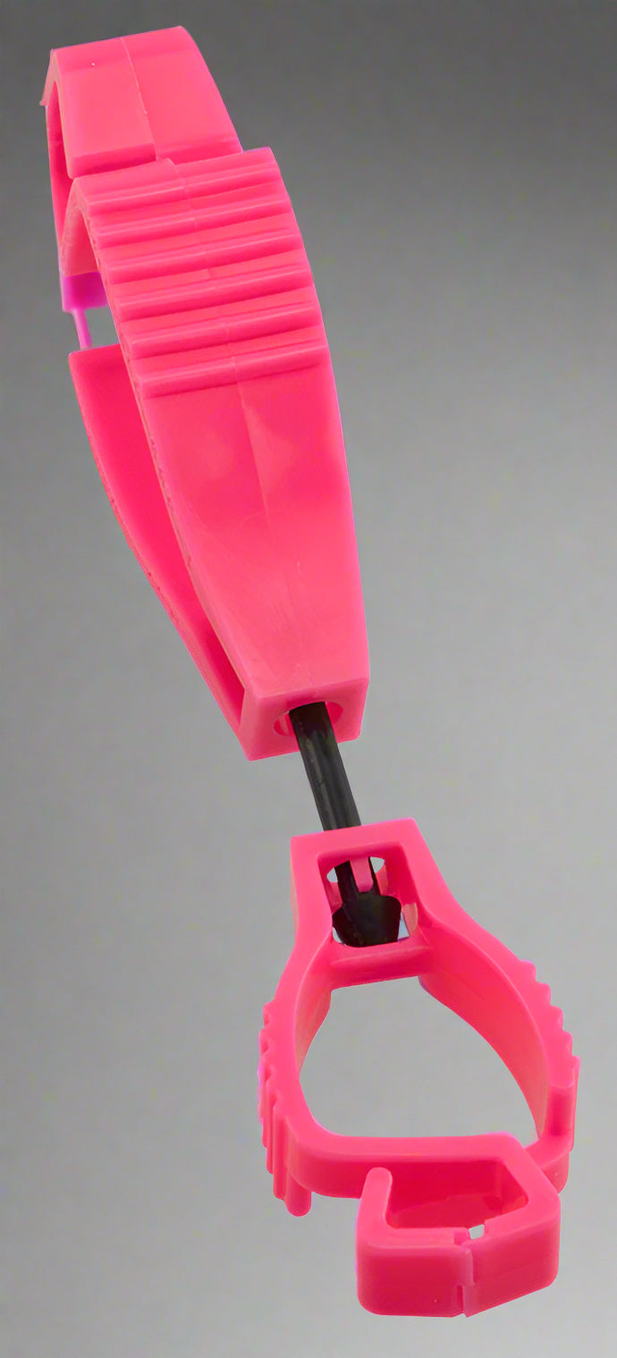 Customize your Glove Guard® clip with a Custom Imprint. To use, simply clip the small end around your belt loop or directly to your clothing and clip the large end to your gloves.